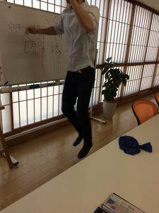 ちょっと高度なトレーニングは、空中を飛び、前後の脚を交差する。