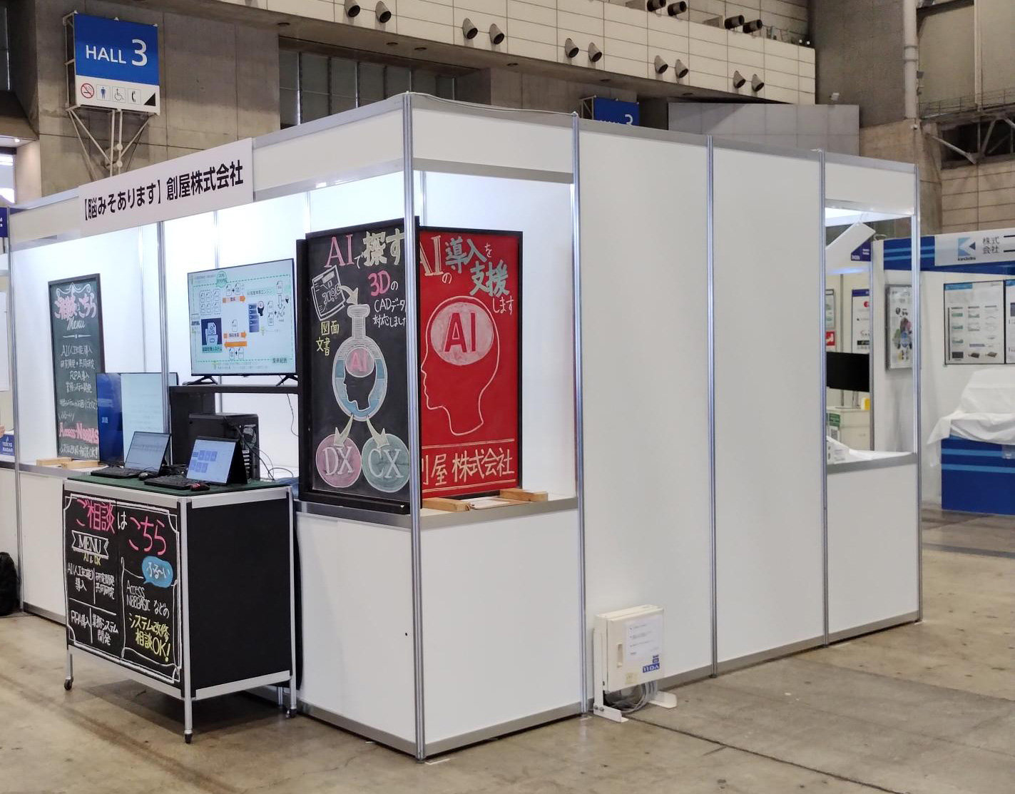 創屋ブースでは、AI技術を活用した図面ソリューション「AI類似図面検索」を中心に、