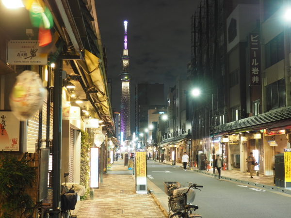 カメラを手に浅草界隈をブラブラ. 月は,満月から少し欠け始めたところ. 写真では雲の中だけど,そのおかげで雲が綺麗かも. 都会の夜は,賑やかな時間が長い.田舎とは大違いだ. それにしても外国人,多いな. かっぱ橋の道具街…